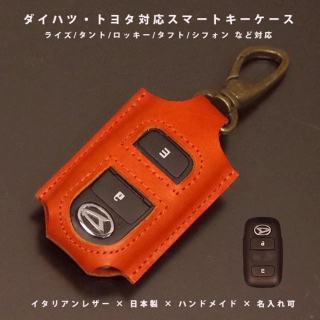 トヨタ ライズ/ダイハツ ロッキー/タント/スバル レックス対応 名入れ 本革スマートキーケース 日本製 ハンドメイド 国産レザー スマートキーカバー