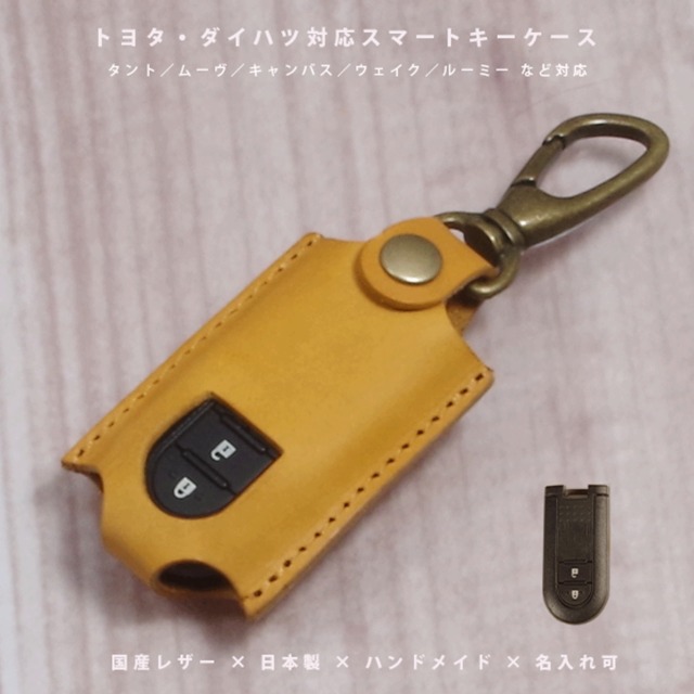 トヨタ ルーミー/ダイハツ タント/ムーヴ/キャンバス対応 名入れ 本革スマートキーケース 日本製 ハンドメイド 国産レザー スマートキーカバー