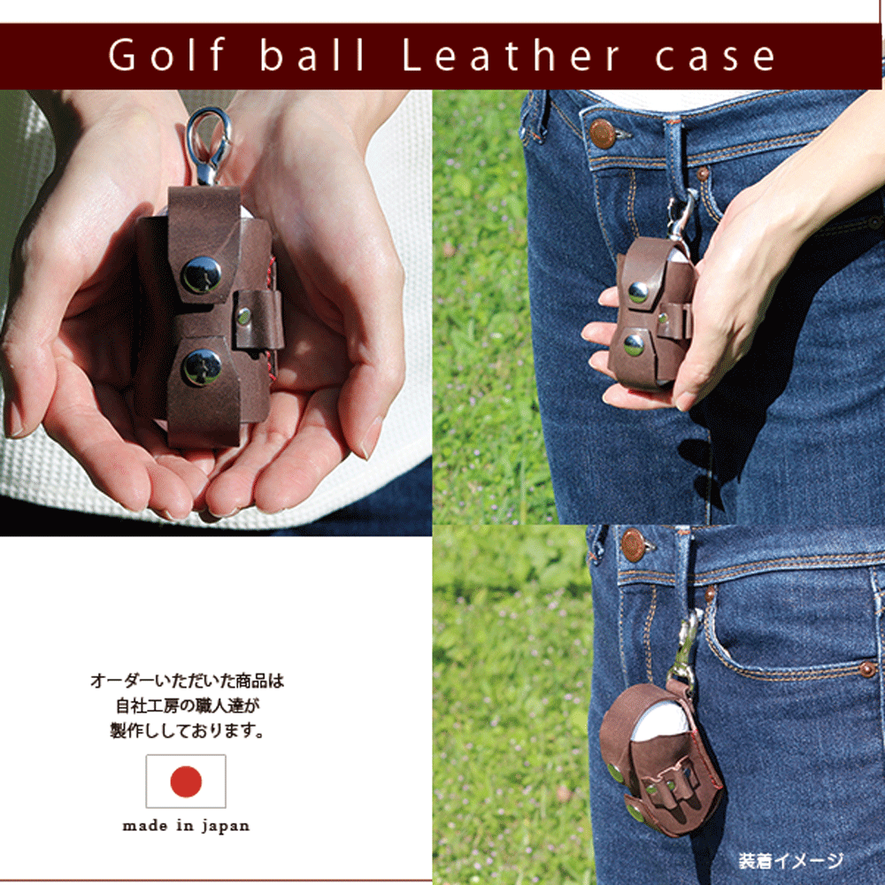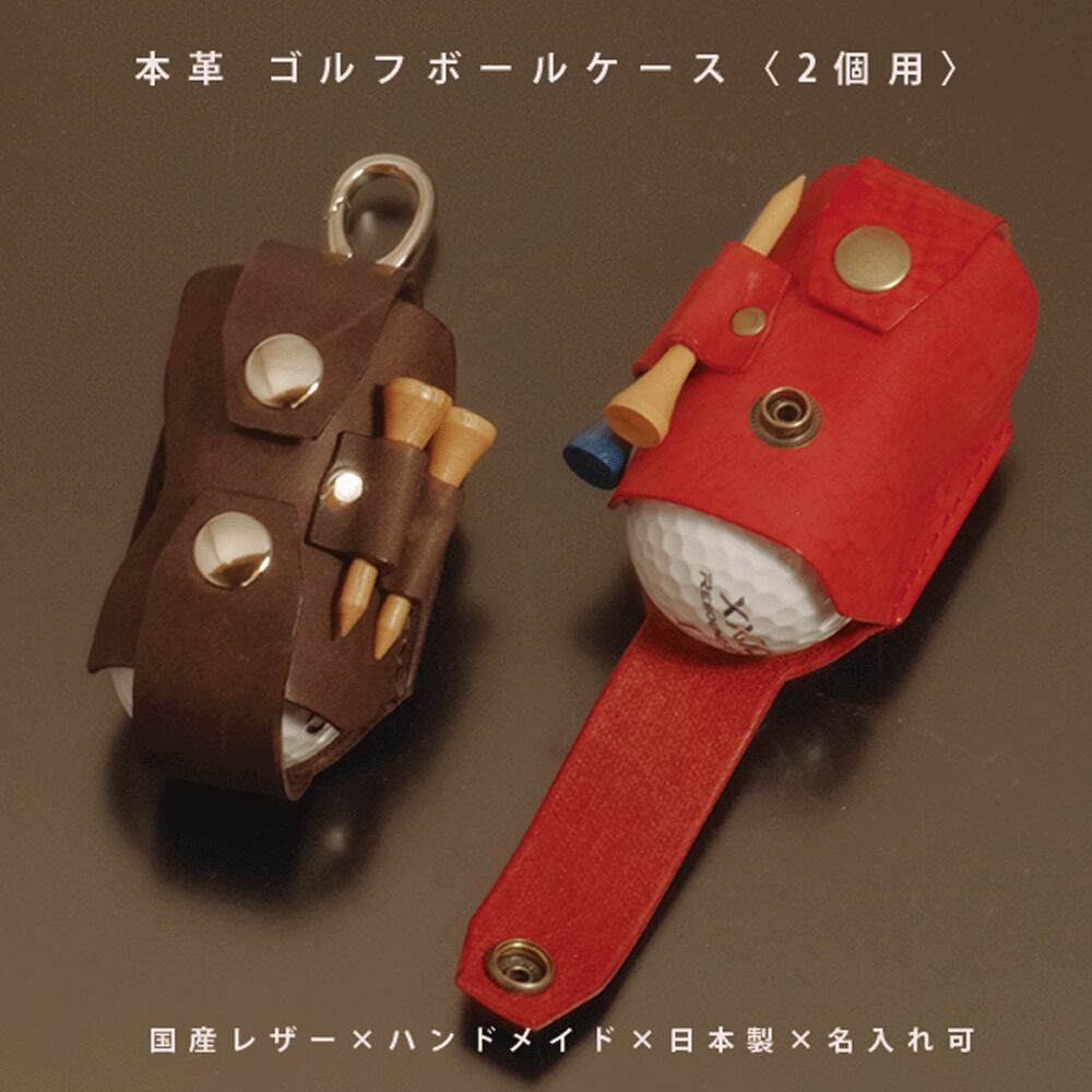 ゴルフボールケース 縦型 本革 国産レザー ボール2個収納 ティー収納 ゴルフ ボールホルダー 日本製 ハンドメイド ゴルフ用品 ギフト