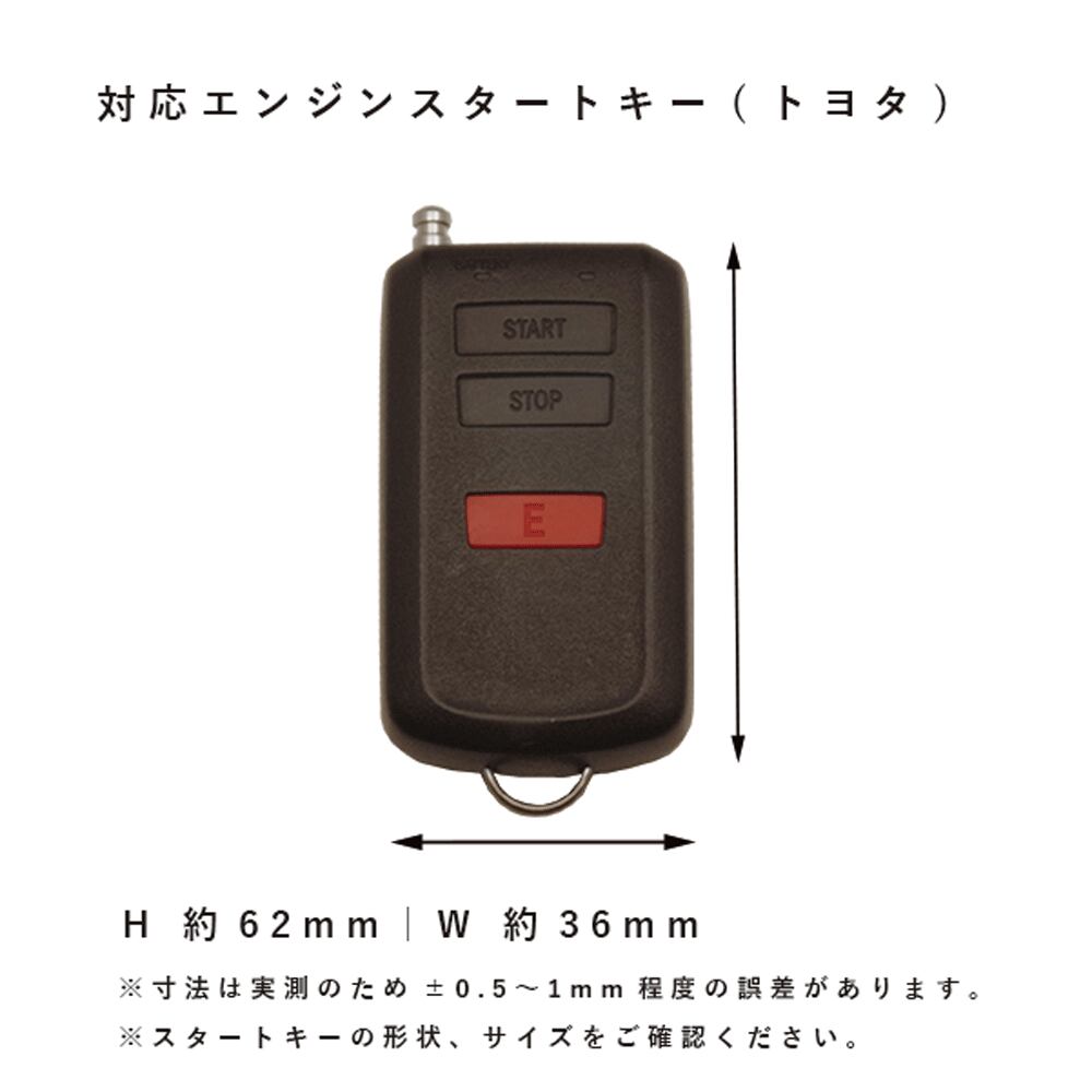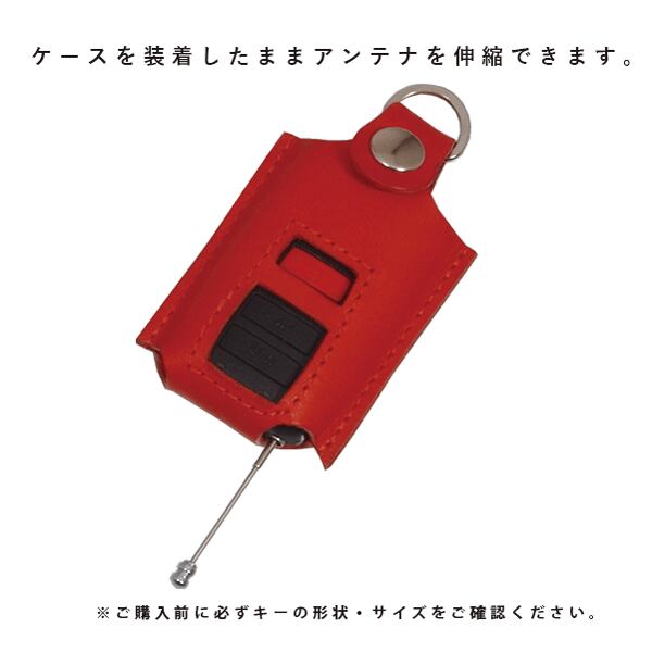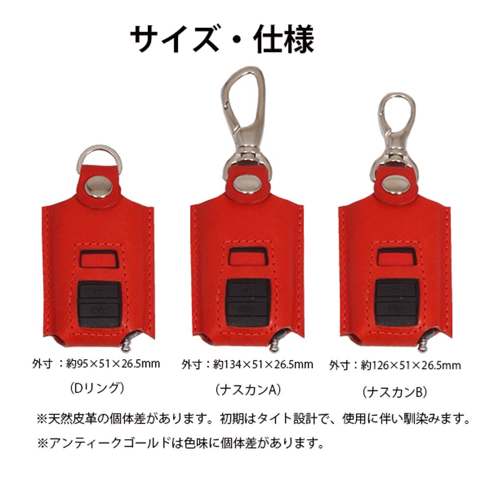 トヨタ・スバル・ダイハツ・マツダ・日産・三菱など幅広いメーカーで採用されている、赤い「E」マークと START/STOP ボタンが特徴のリモコン専用に設計した本革キーケースです(62×36mm対応)。