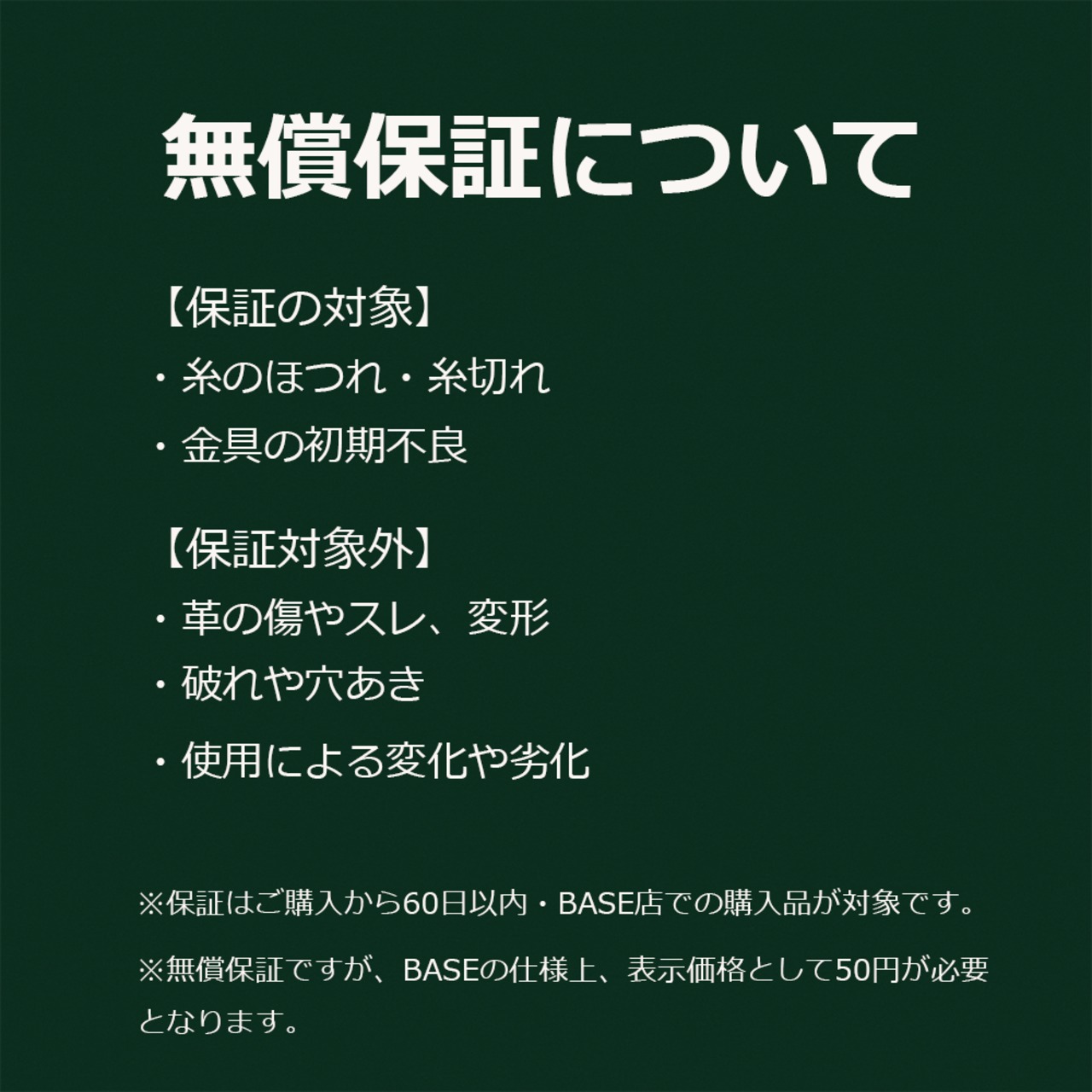 ※本サービスは無償保証となりますが、BASEの仕様上、最低価格50円での表示が必要となっています。保証対応に追加費用は一切かかりませんのでご安心ください。