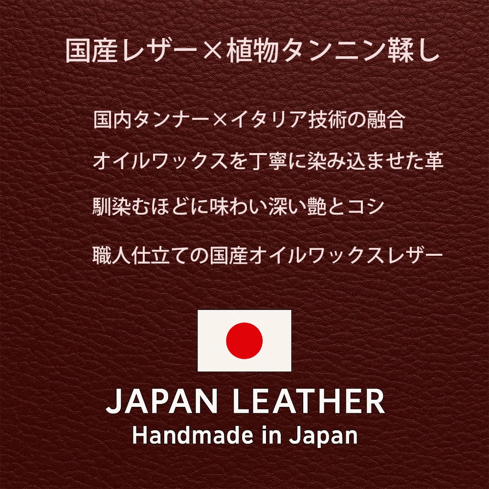 国産レザーならではの上質な風合いと、美しい経年変化をお楽しみください。