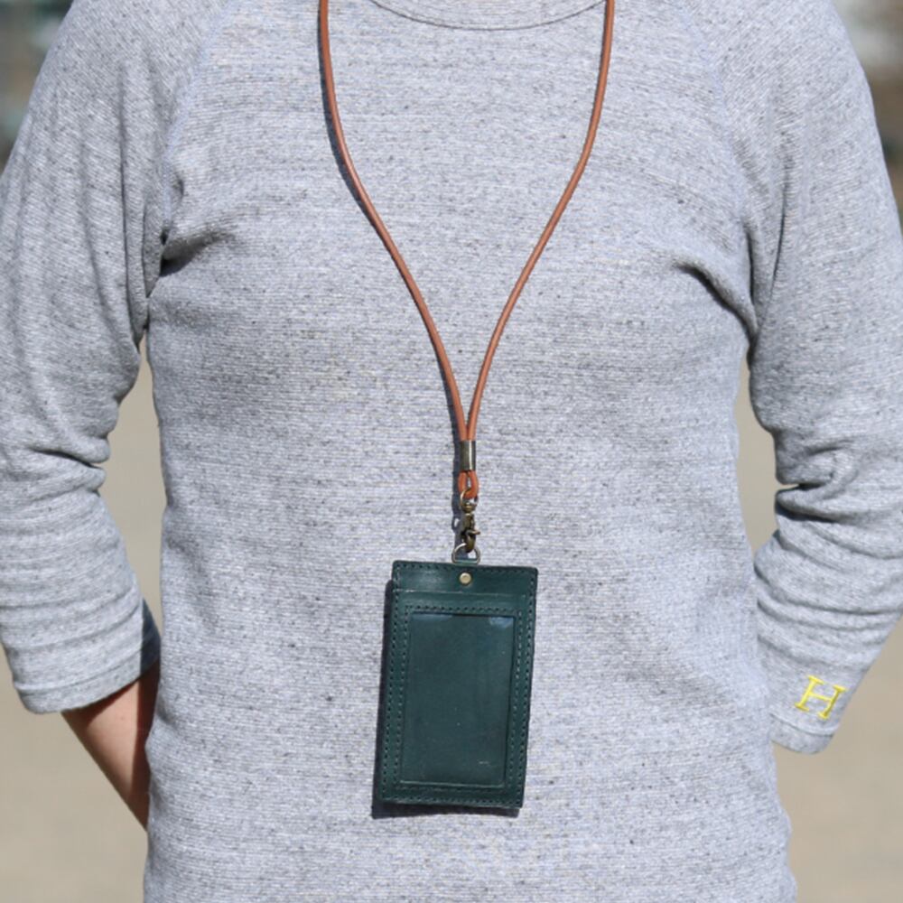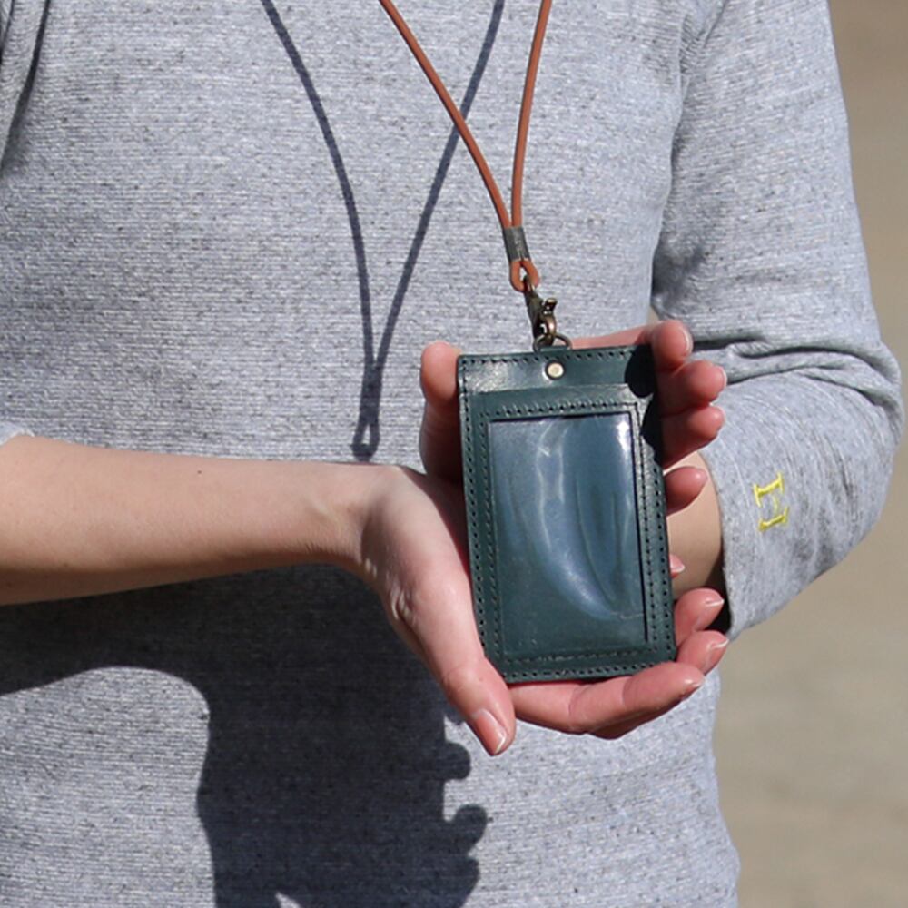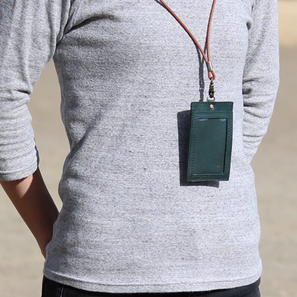 IDカードケース 縦型 ネックストラップ付き 本革 イタリアンレザー 社員証 ICカード パスケース 名札ケース 日本製 ハンドメイド ギフト