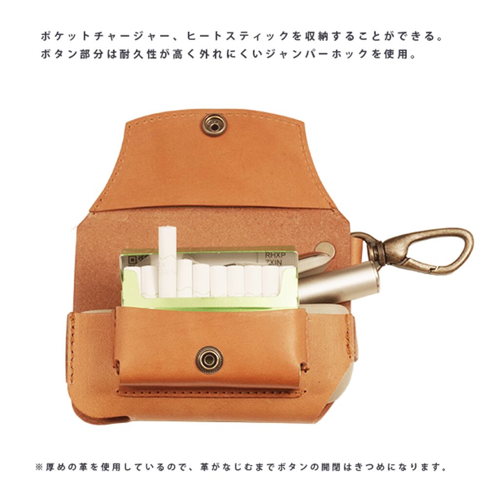 IQOS ILUMA/ILUMA i 専用に設計された国産レザーケース。本体とヒートスティック(TEREA/HEETS/マールボロ等)をスマートに一括収納できる仕様です。国内の上質なオイルレザーを採用し、手に馴染む柔らかさと自然な風合いが魅力。日本の革職人が丁寧に仕立てた、耐久性と質感を兼ね備えた加熱式タバコ用レザーケースです。※ILUMA PRIME非対応。