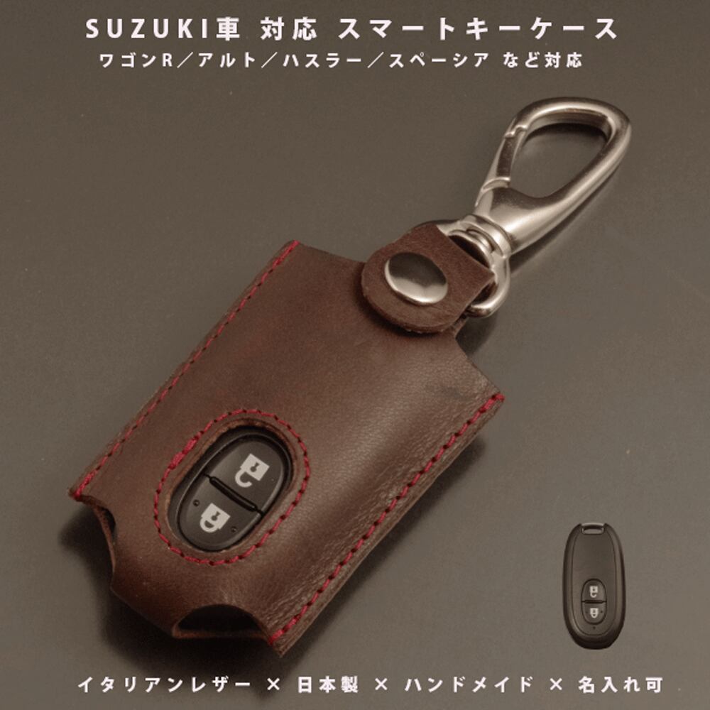 スズキ ワゴンR アルト ハスラー スペーシア ソリオ スイフト エブリイ マツダ フレア 対応 スマートキーケース カバー 本革 名入れ イタリアンレザー 日本製 ハンドメイド ギフト対応 | NORTH LEAF