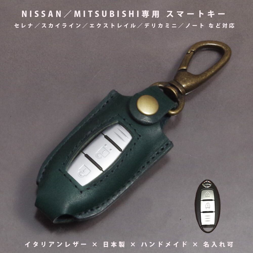 日産 スカイライン/エクストレイル/セレナ/ノート/デイズ 対応 三菱 デリカミニ/ekクロス 対応 スマートキーケース カバー 本革 名入れ イタリアンレザー 日本製 ハンドメイド ギフト | NORTH LEAF