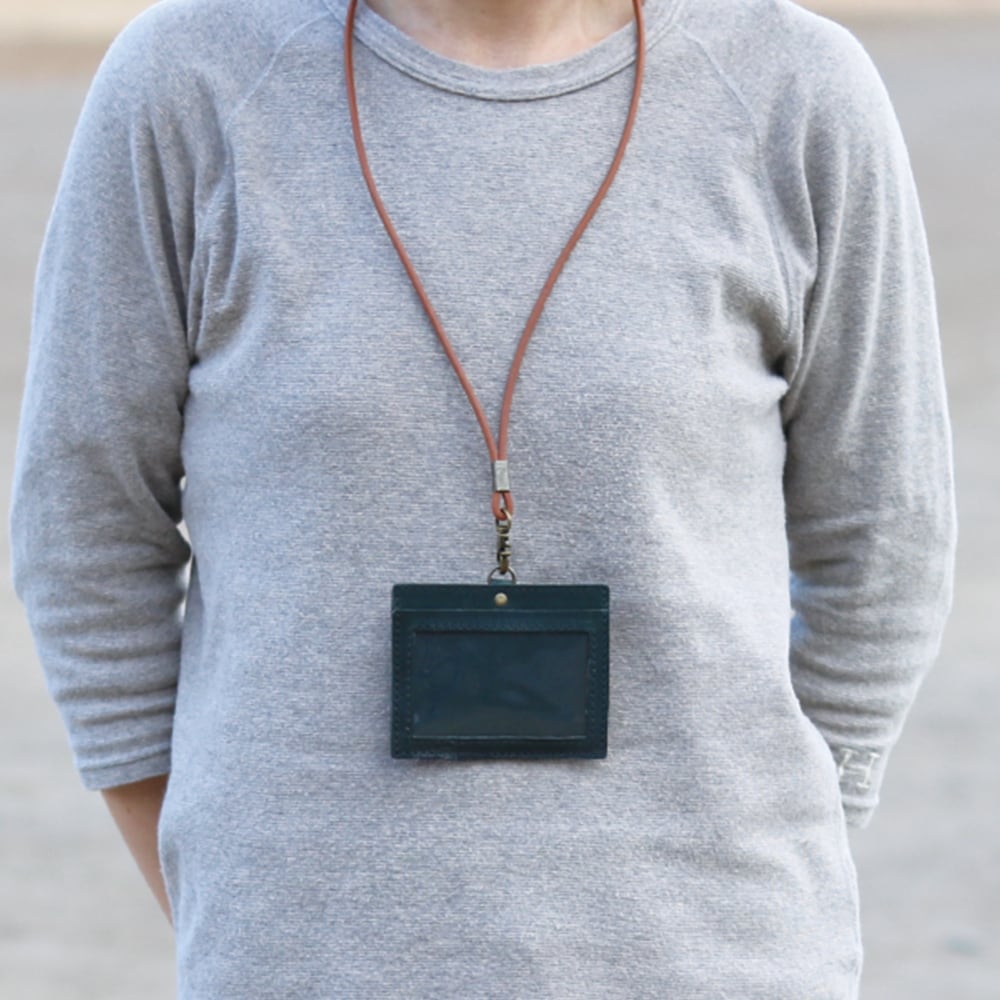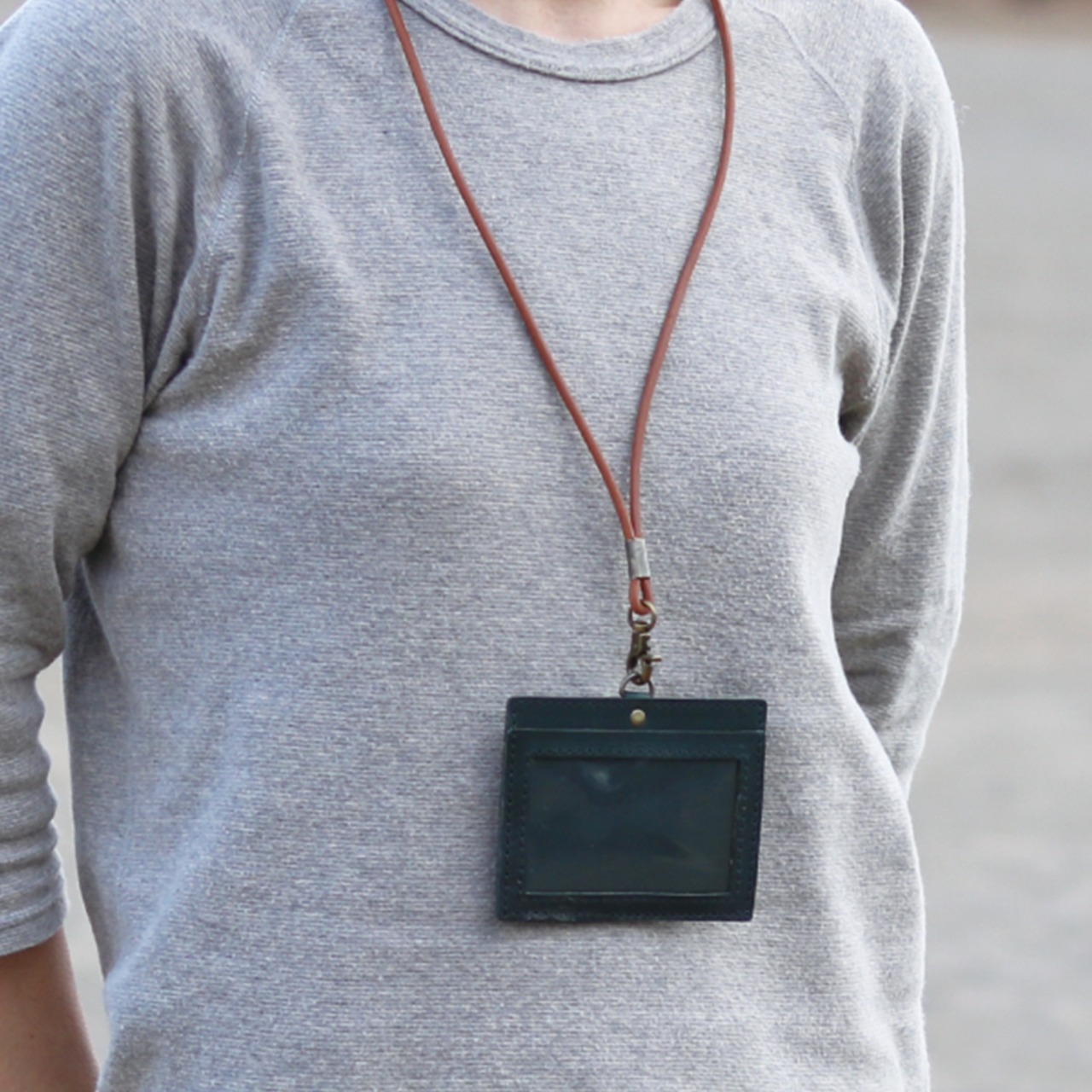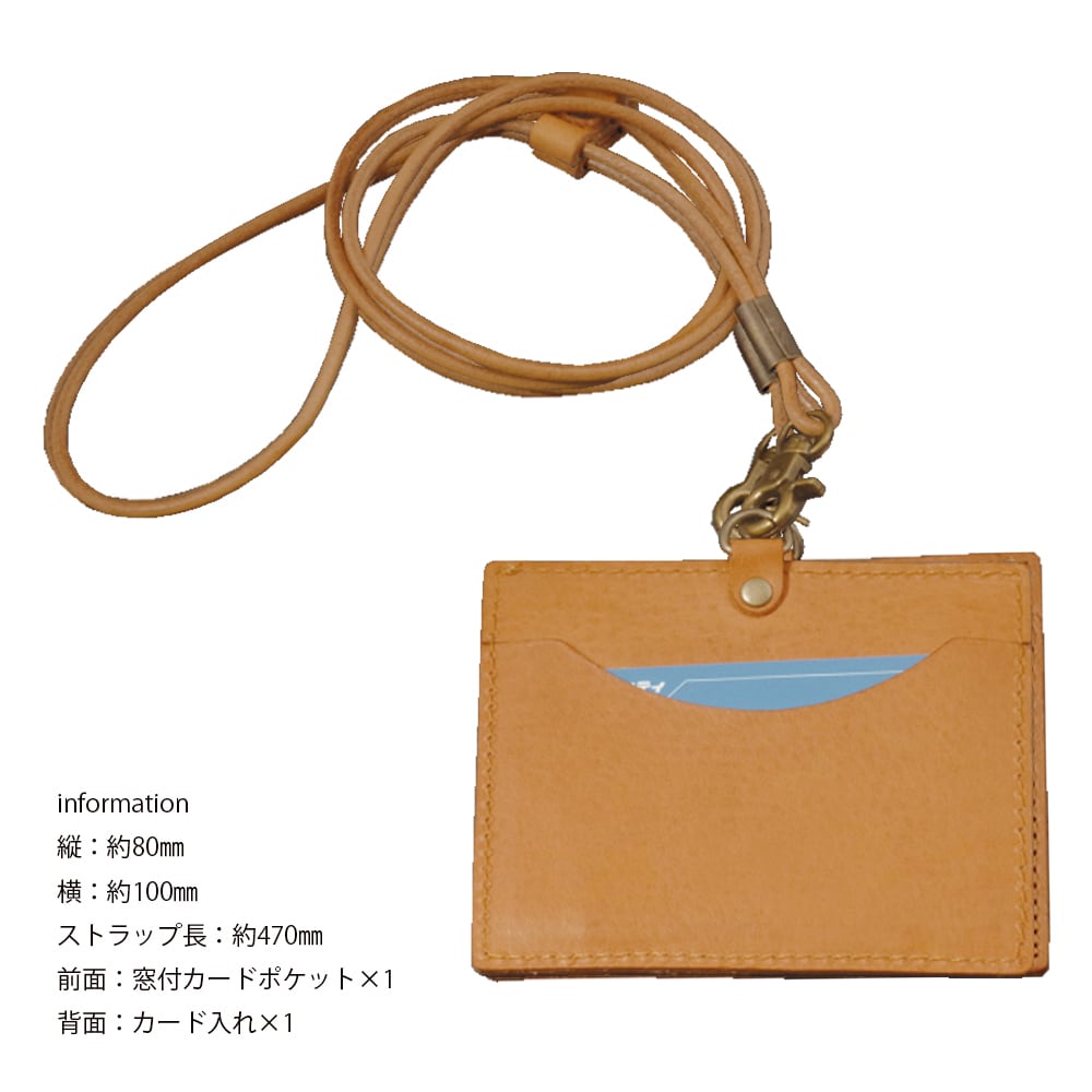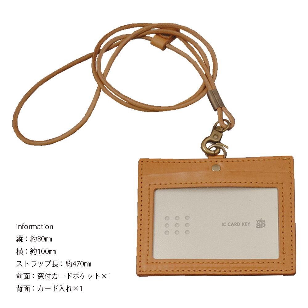 IDカードケース 横型 ネックストラップ付き 本革 イタリアンレザー 社員証 ICカード パスケース 名札ケース 日本製 ハンドメイド ギフト