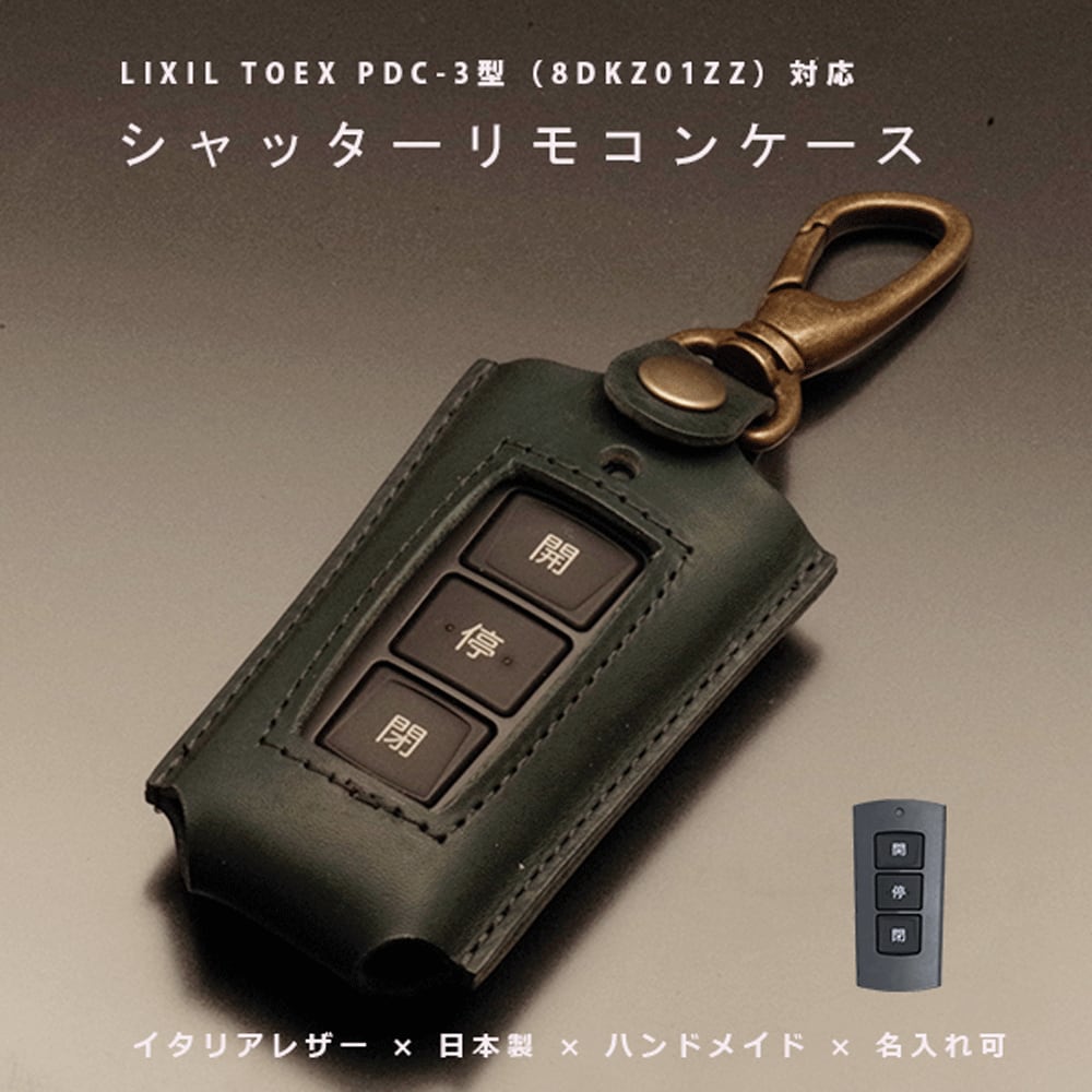 LIXIL(リクシル)/TOEX(トウエックス)の「PDC-3型(8DKZ01ZZ)」専用に設計された本革リモコンキーケースです。ガレージシャッターやカーゲート操作に使用する純正リモコンにジャストフィットし、イタリアンレザーならではの上質な風合いと耐久性を備えています。イタリア・トスカーナ産レザーを国内職人が丁寧に仕立て、使うほどに増す艶と経年変化を楽しめます。名入れ対応でギフトにも最適です。