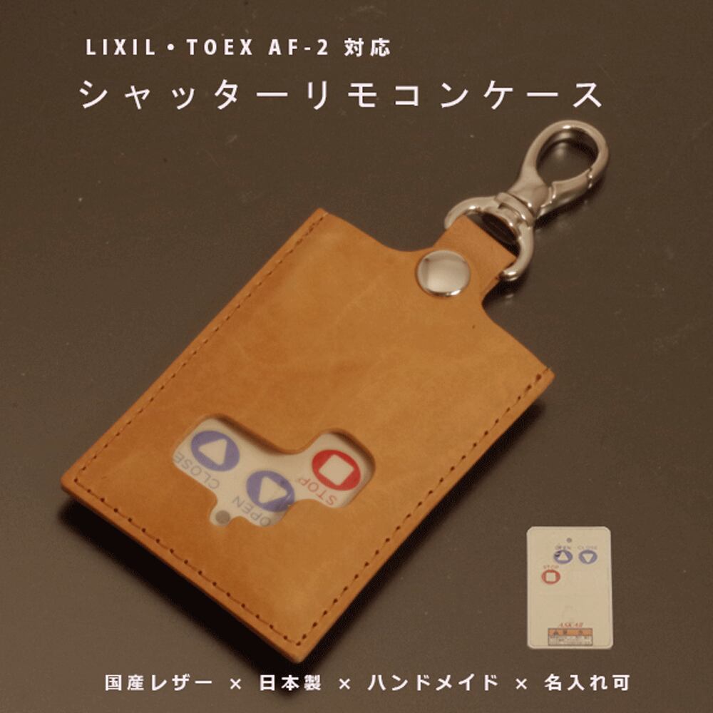 LIXIL(リクシル)/TOEX(トウエックス)のシャッター・カーゲート用送信器「AF-2」専用に設計された本革リモコンキーケースです。大切なリモコンキーをキズや汚れから保護しつつ、国産植物タンニン鞣しレザーの上質な質感と耐久性を備えた日本製ハンドメイド。毎日手にする玄関ドアキーやガレージ用リモコンを、より上品な印象に仕上げます。